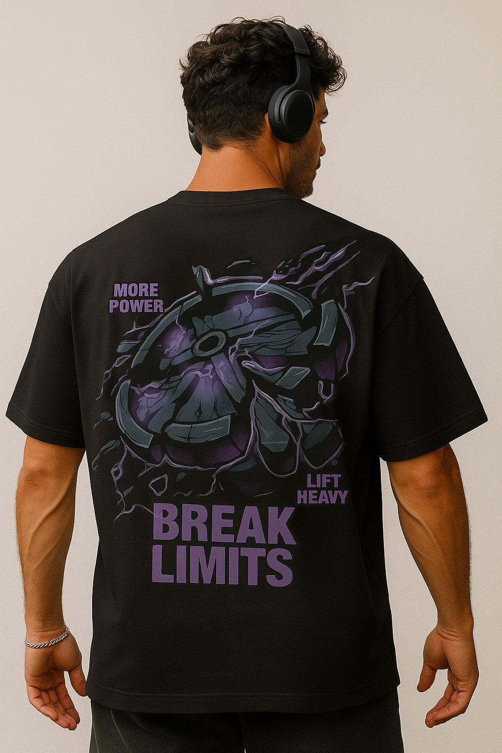 Push beyond your boundaries with the Break Limits Oversized Graphic Tee. Featuring a bold, cracked-weight plate design and powerful typography like “More Power,” “Lift Heavy,” and “Break Limits,” this tee is made for those who train hard and live harder. Crafted from soft, breathable cotton with an oversized fit, it's perfect for gym sessions, streetwear vibes, or just making a statement wherever you go.